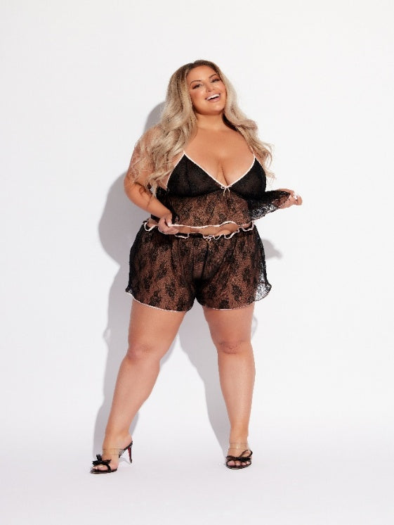 A love letter to late nights and slow mornings. The Lace Cami & Short Sleep Set is sheer poetry—delicate lace trimmed in satin, designed to move with you and melt into your skin.